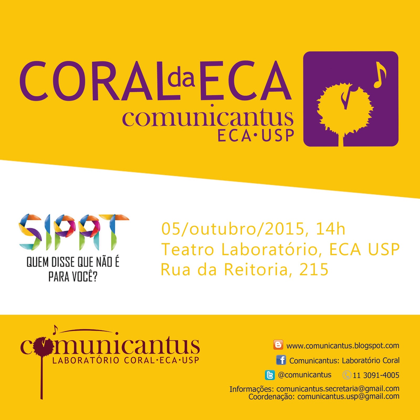 Para saber mais sobre a apresentação do Coral da ECA, acompanhe nossa página do Facebook e Twitter (@comunicantus) e não perca!