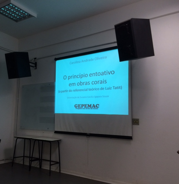 Além disso, está em curso o Seminário de Pesquisas em Andamento do GEPEMAC (Grupo de Estudos e Pesquisas Multidisciplinares nas Artes do Canto). O evento, que se iniciou na tarde desta quarta-feira – 15/06 – no departamento de Música da ECA-USP, contou com o seminário “O princípio entoativo em obras corais (a partir do referencial teórico de Luiz Tatit)” feito pela mestranda Carolina Andrade Oliveira, orientada por Susana Cecilia Igayara.